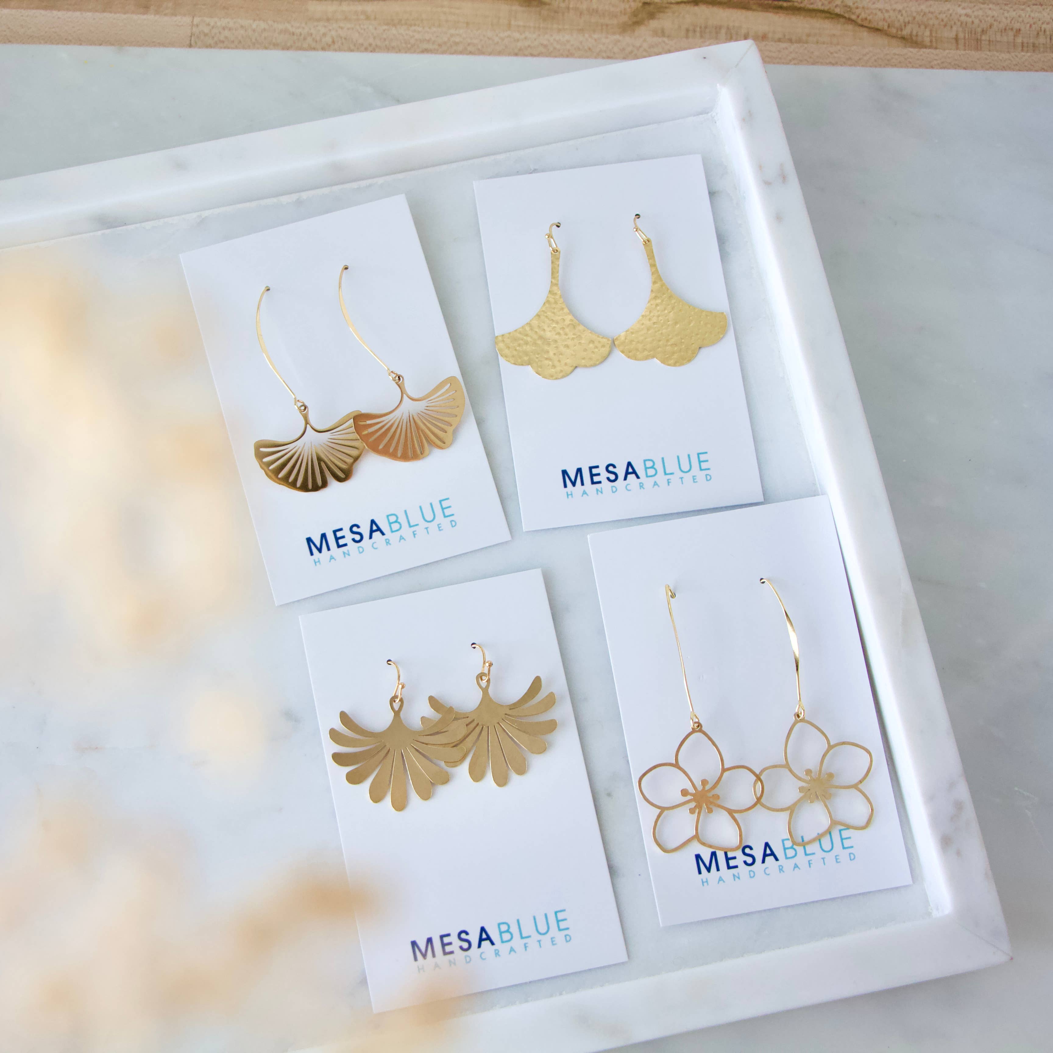 Brass Sakura Flower Drop Earrings