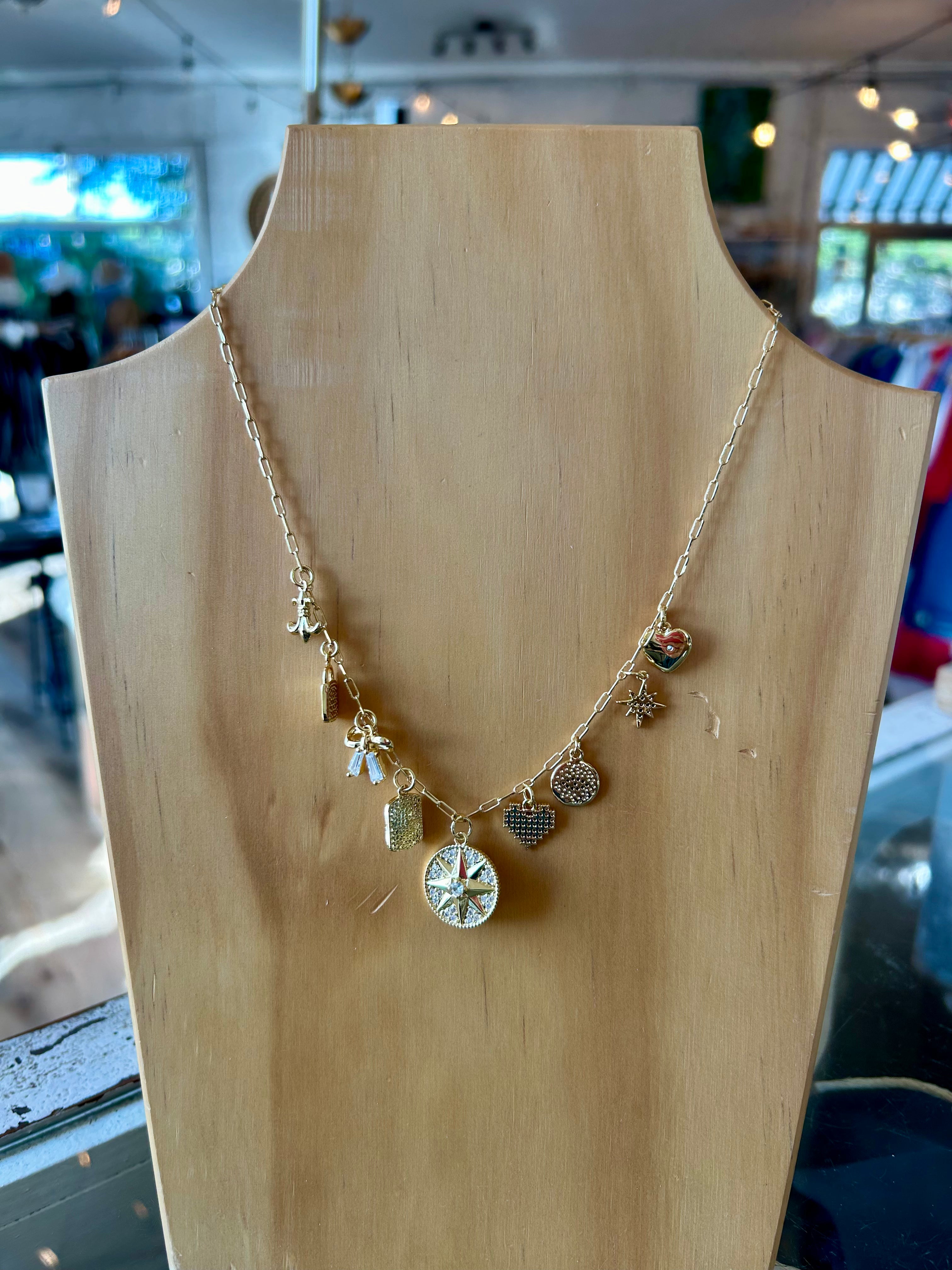 Elevate your style with the Celestial Necklace, featuring a delicate gold chain adorned with charming heart and star pendants. This elegant piece adds a touch of whimsy and shine to any outfit, making it perfect for everyday wear or special occasions. Its lightweight design ensures comfort while making a subtle yet captivating statement. Embrace a blend of romance and celestial beauty with this must-have accessory.