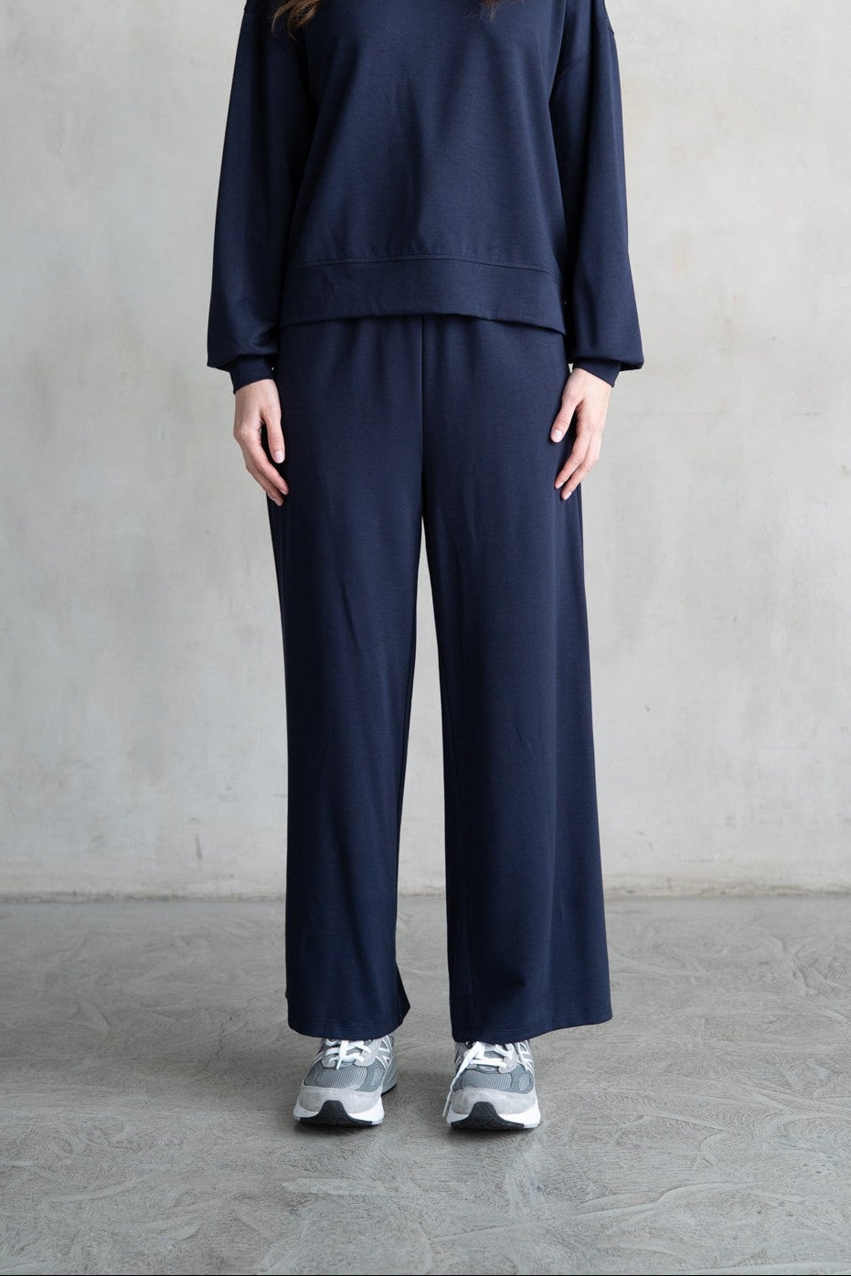 Effortless comfort meets everyday style with these Deep Tide Pants. Crafted from smooth jersey fabric, they feature a relaxed wide-leg silhouette that moves with you from lounging at home to casual outings. The elastic waistband with adjustable drawstring ensures a custom fit, while the full-length cut and clean hem finish deliver a polished look. Perfect for building a versatile wardrobe that prioritizes both ease and sophistication. Pairs perfectly with our Deep Tide Pullover!