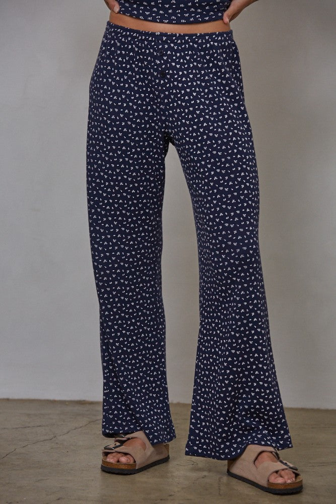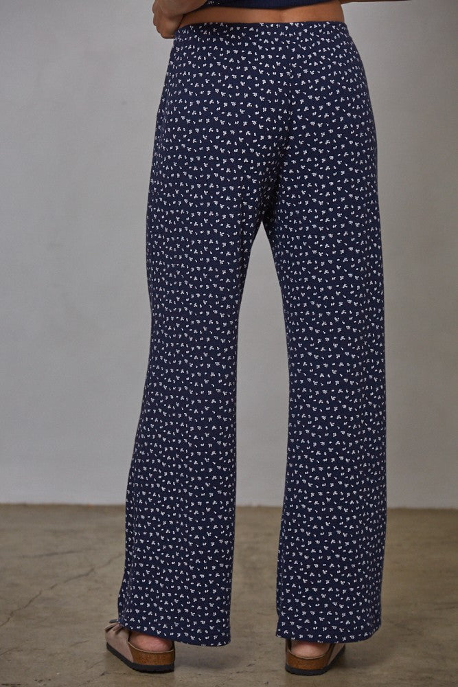 Experience effortless style and comfort with the Ditsy Daisy Pants. Crafted from a soft knit blend of cotton and polyester, these pants feature a delicate floral print on a textured waffle fabric that feels cozy all day. The straight-leg cut offers a flattering silhouette, while the waistband with button detail adds a refined touch. Perfect for casual outings or relaxed workdays, these pants combine charm and ease to elevate your wardrobe.