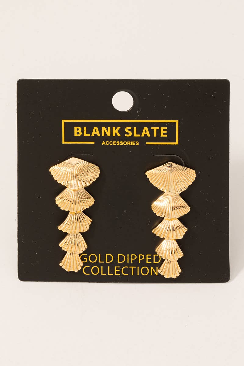 Gold Dipped Five Layered Shell Drop Earrings