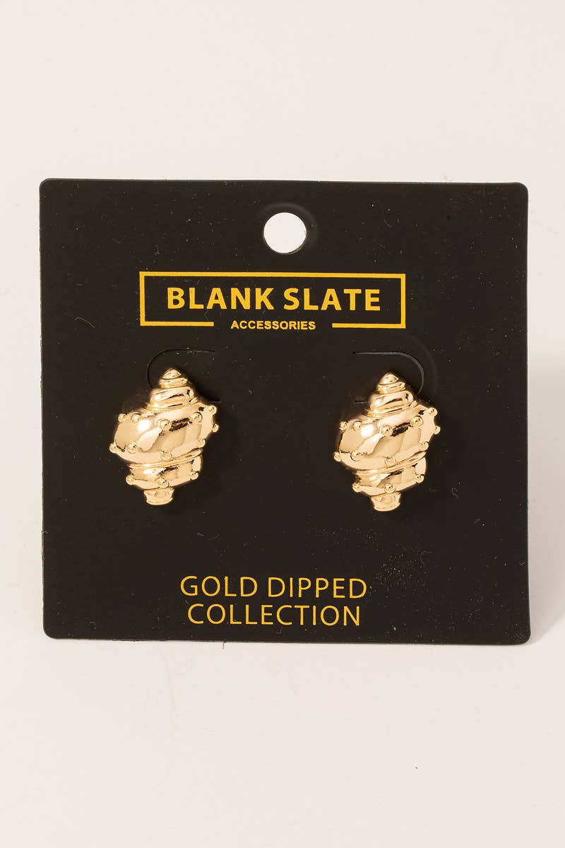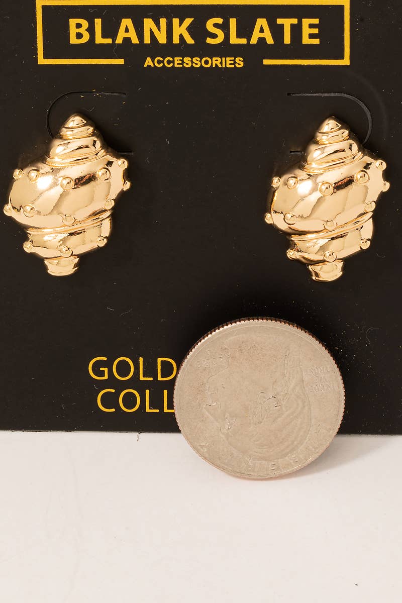 This pair of earrings brings a unique gold dipped seashell style. Redefine your look effortlessly with this standout, on-trend piece. 100% ALLOY