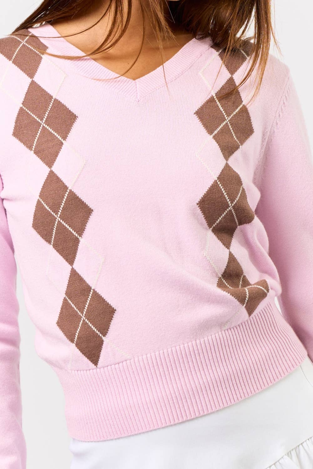 This argyle sweater puts a fresh spin on a timeless pattern, combining cozy knitwear with a stylish diamond motif that adds subtle visual interest. The comfortable fit and versatile design make it perfect for layering or wearing solo, bringing a preppy yet relaxed vibe to your everyday wardrobe.