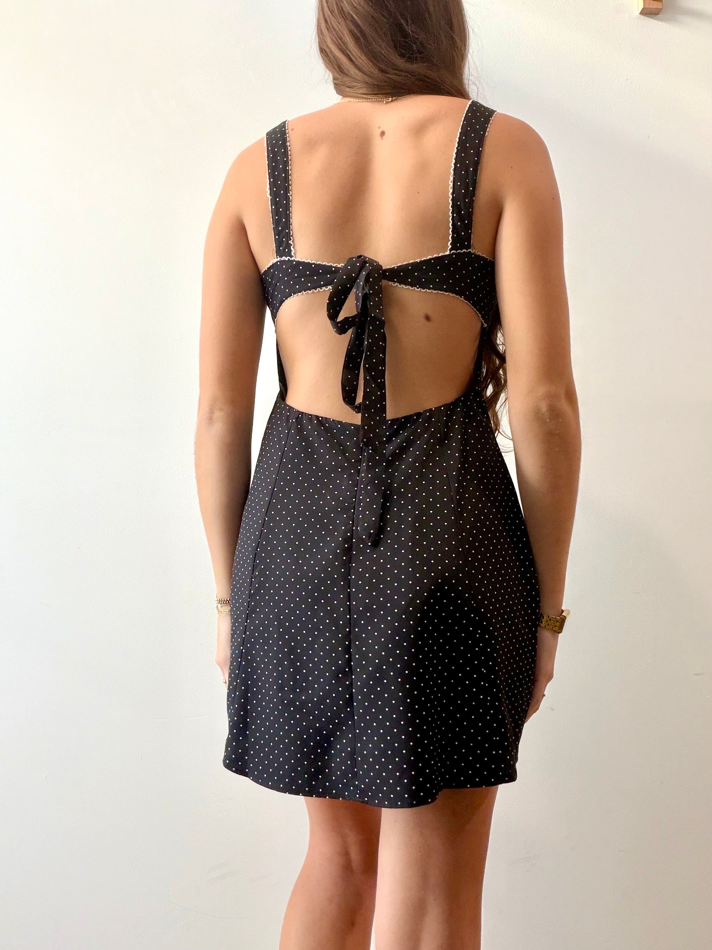 The Lumina Mini Dress combines timeless elegance with flattering design. Featuring a romantic sweetheart neckline and a classic A-line silhouette, this black polka dot mini dress enhances your natural shape while offering effortless style. Perfect for evenings out or special occasions, Lumina brings a confident, chic look that stands out with subtle sophistication.