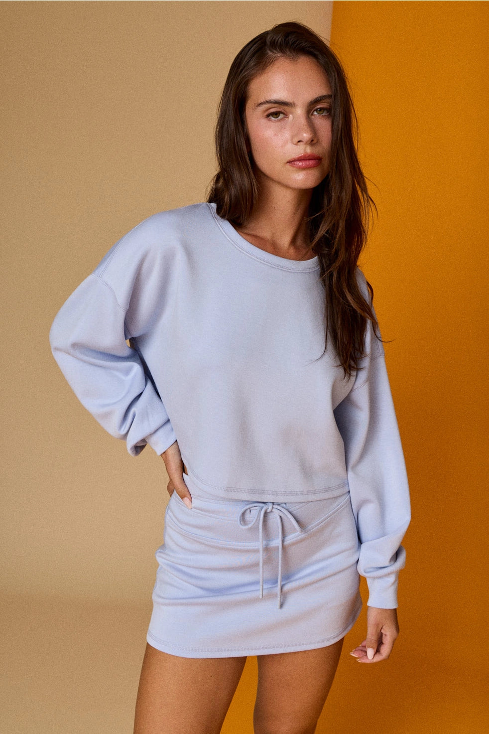 Sink into effortless comfort with the Morning Sky Top, a relaxed sweatshirt designed for everyday ease. Crafted from soft knit fabric that feels as good as it looks, this piece features a drop shoulder silhouette and generously roomy sleeves that create a modern, laid-back vibe. Perfect for lounging, running errands, or layering through the seasons, this versatile essential pairs seamlessly with your favorite jeans or leggings for an instantly polished look. Pair it with the Morning Sky Mini Skirt to complete the set!