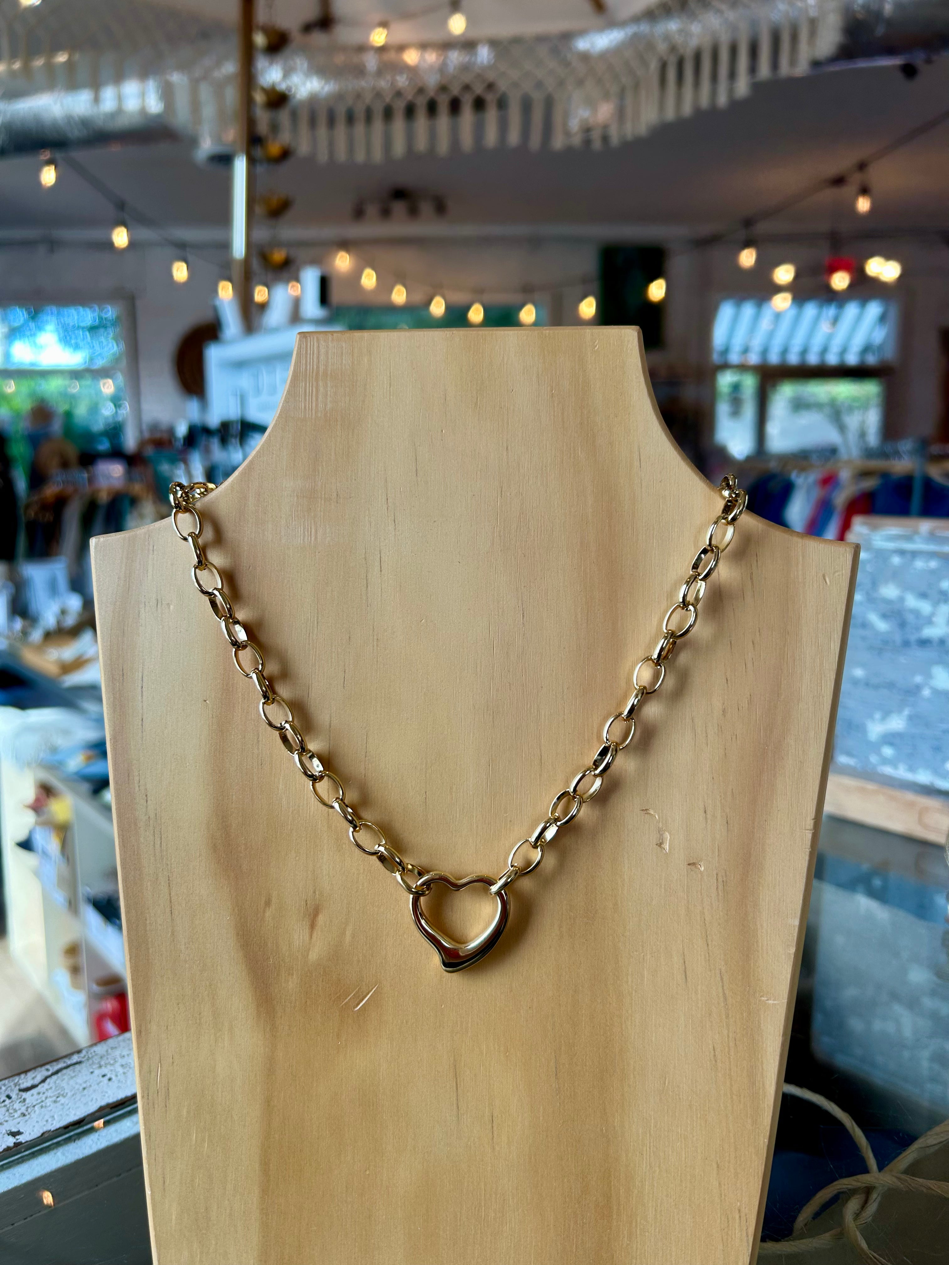 Elevate your style with the Olivia Necklace, featuring a large gold chain and a charming heart pendant. This water-resistant piece combines boldness with elegance, making it perfect for everyday wear without worry. Its durable finish ensures lasting shine, adding a touch of sophisticated warmth to any outfit.