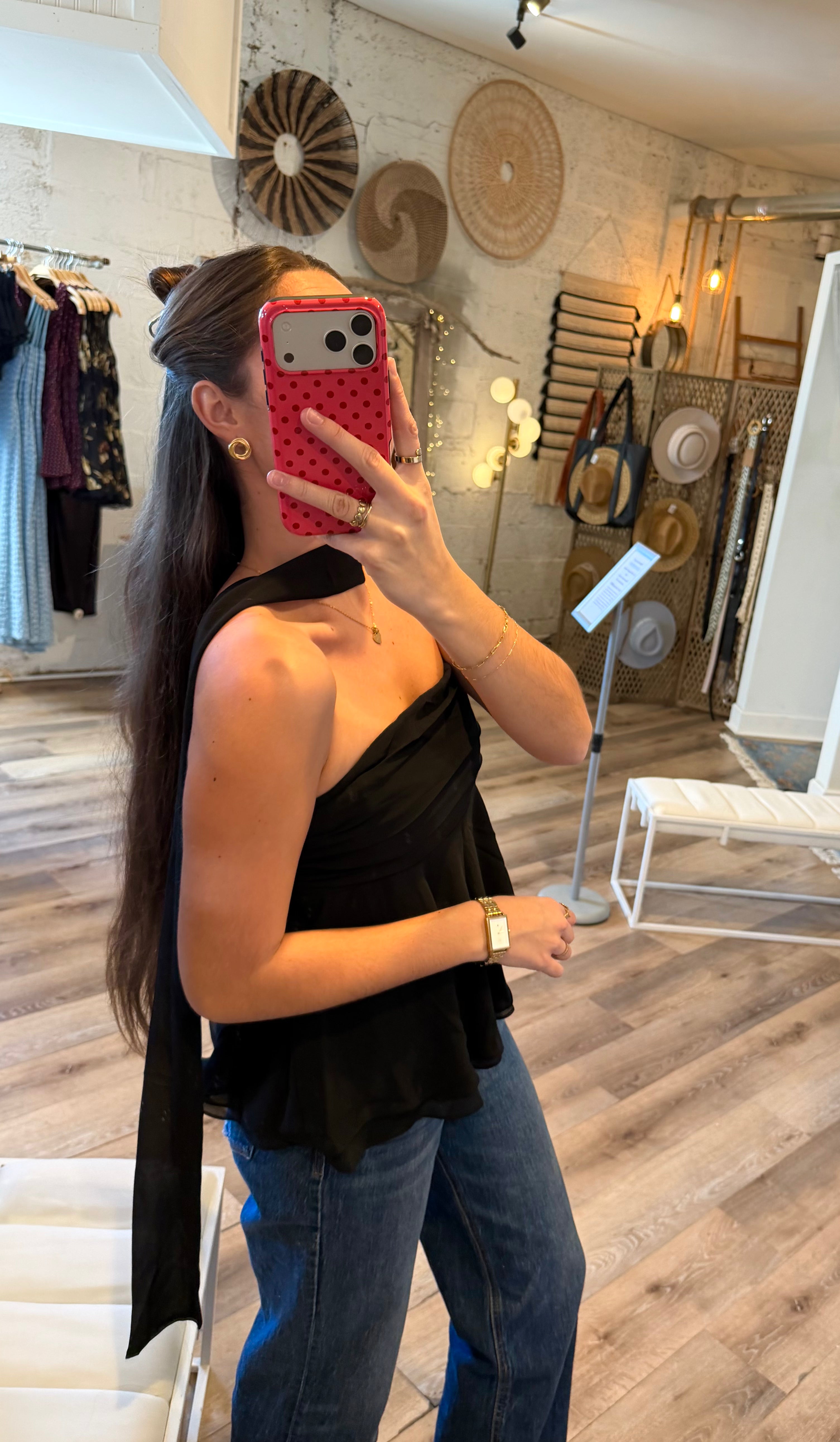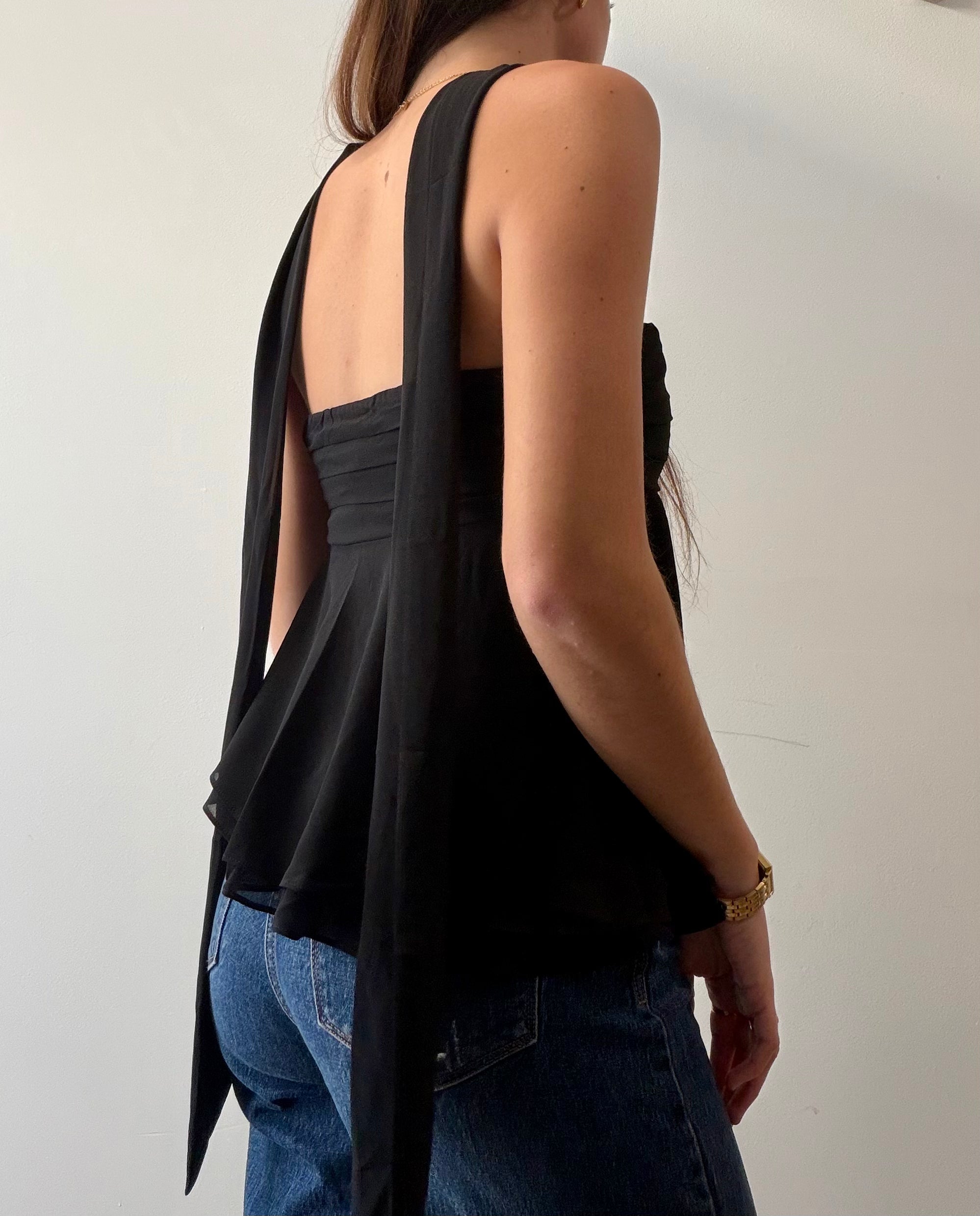 The Raven Grace Top offers a striking asymmetrical silhouette with delicate ruffle detailing that adds a touch of elegance. Its unique bandeau design seamlessly reveals the collarbones, creating a sophisticated neckline, while the open back adds an alluring finish. The Raven Grace Top also comes with a matching neck scarf to add a sophisticated touch of elegance. Perfect for occasions when you want to stand out with effortless style and confidence.