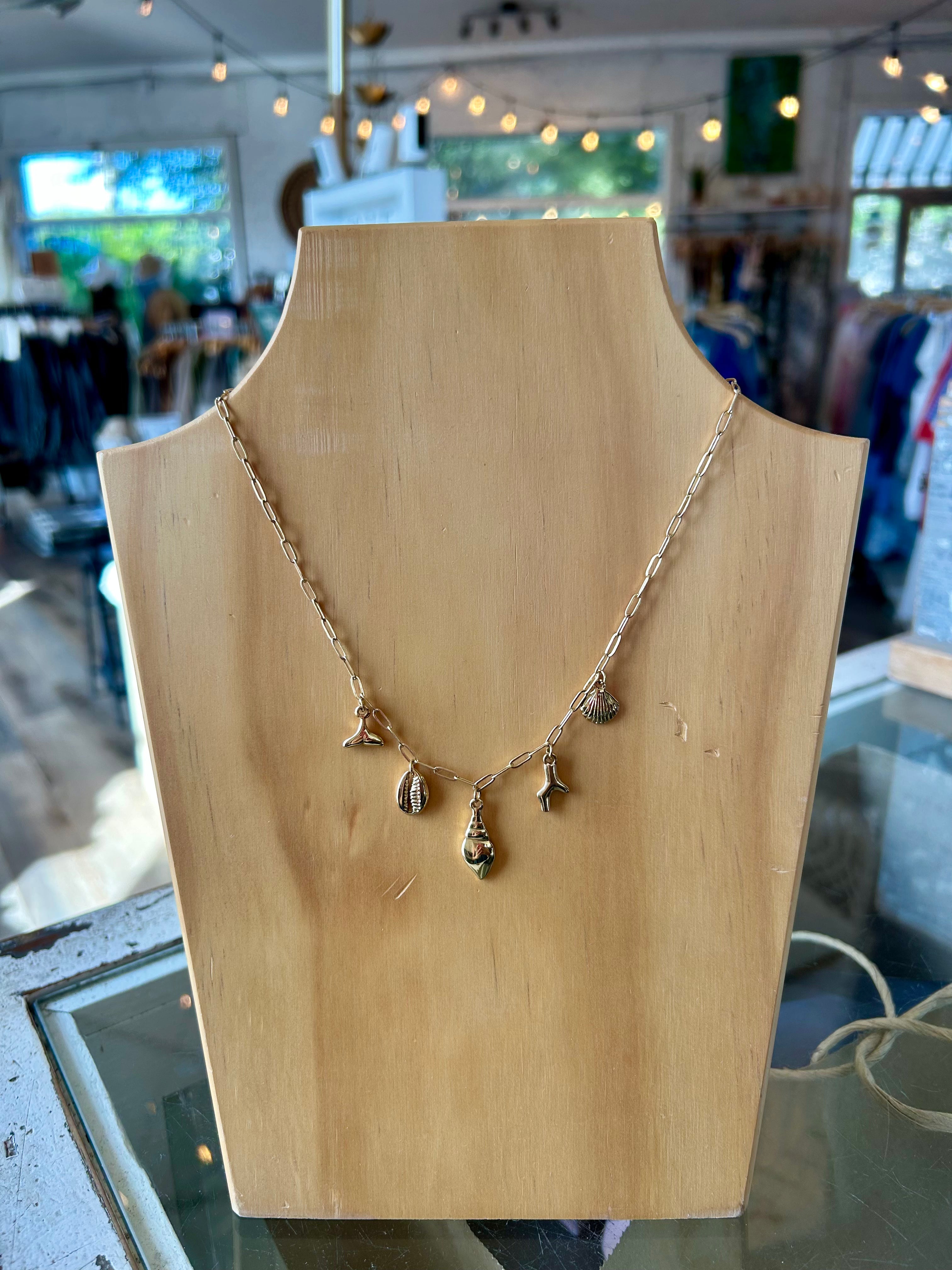 Capture the essence of seaside elegance with the Solara Charm Necklace. Crafted with water-resistant gold, this durable piece withstands your beach adventures while adding a radiant, coastal-inspired touch to any outfit. Let its charming design remind you of sunlit shores and ocean breezes wherever you go.