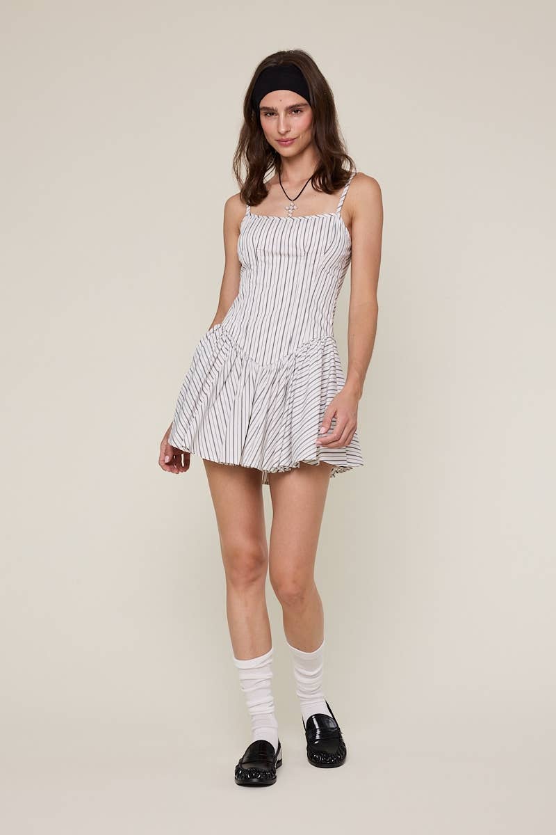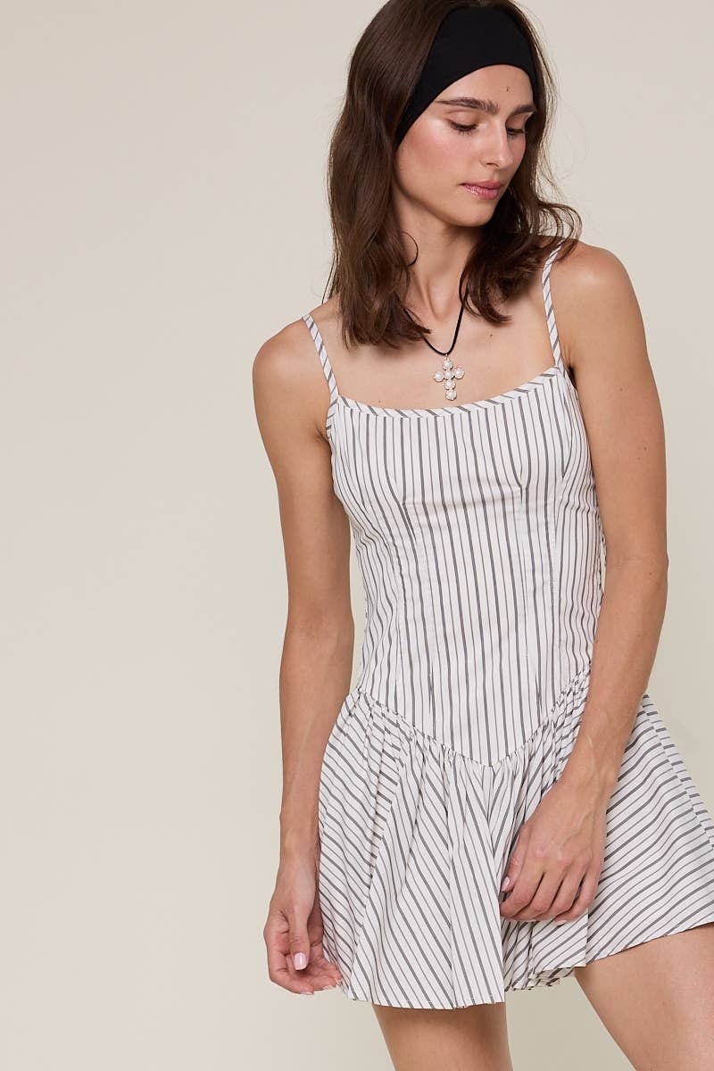 Flatter your figure in the Sweet Stripes Mini Dress, featuring a chic square neckline and adjustable tie straps for a customized fit. The sleeveless design and back zipper ensure easy wear, while the fit-and-flare silhouette adds effortless style to any casual occasion. Crafted from a comfortable blend of polyester and spandex with a smooth lining, this dress moves with you from day to night. Elevate your wardrobe with this playful and versatile striped print mini dress.