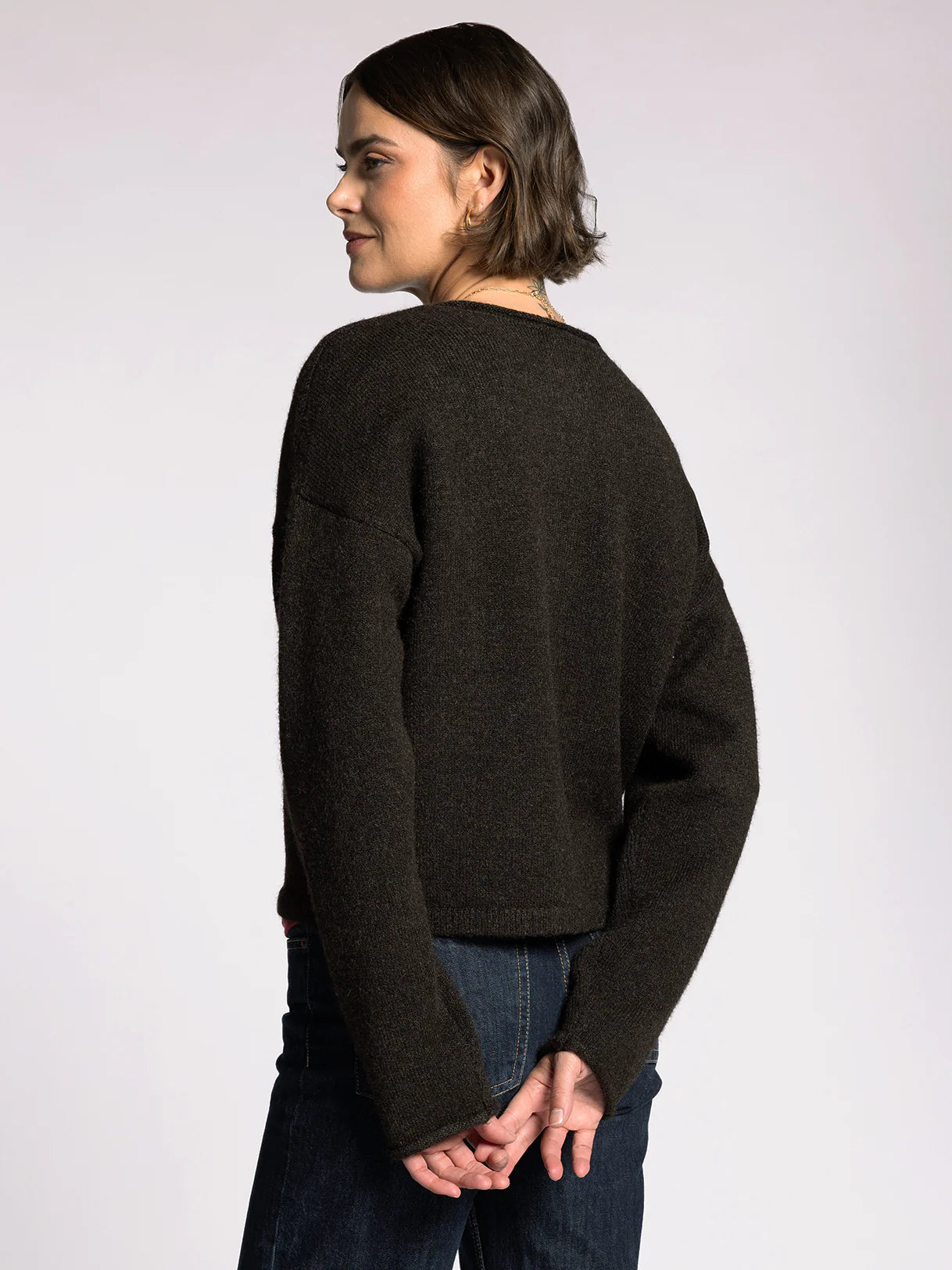 Wrap yourself in effortless comfort with the Dover Cardigan, a relaxed-fit essential crafted from our signature cozy yarn. Featuring a rolled neck and sleeves for added texture and visual interest, this piece transitions seamlessly from layering over basics to standalone styling. The full button front closure and drop shoulder design create a laid-back silhouette that flatters and feels as good as it looks. Perfect for casual days when you want to feel put-together without sacrificing comfort.