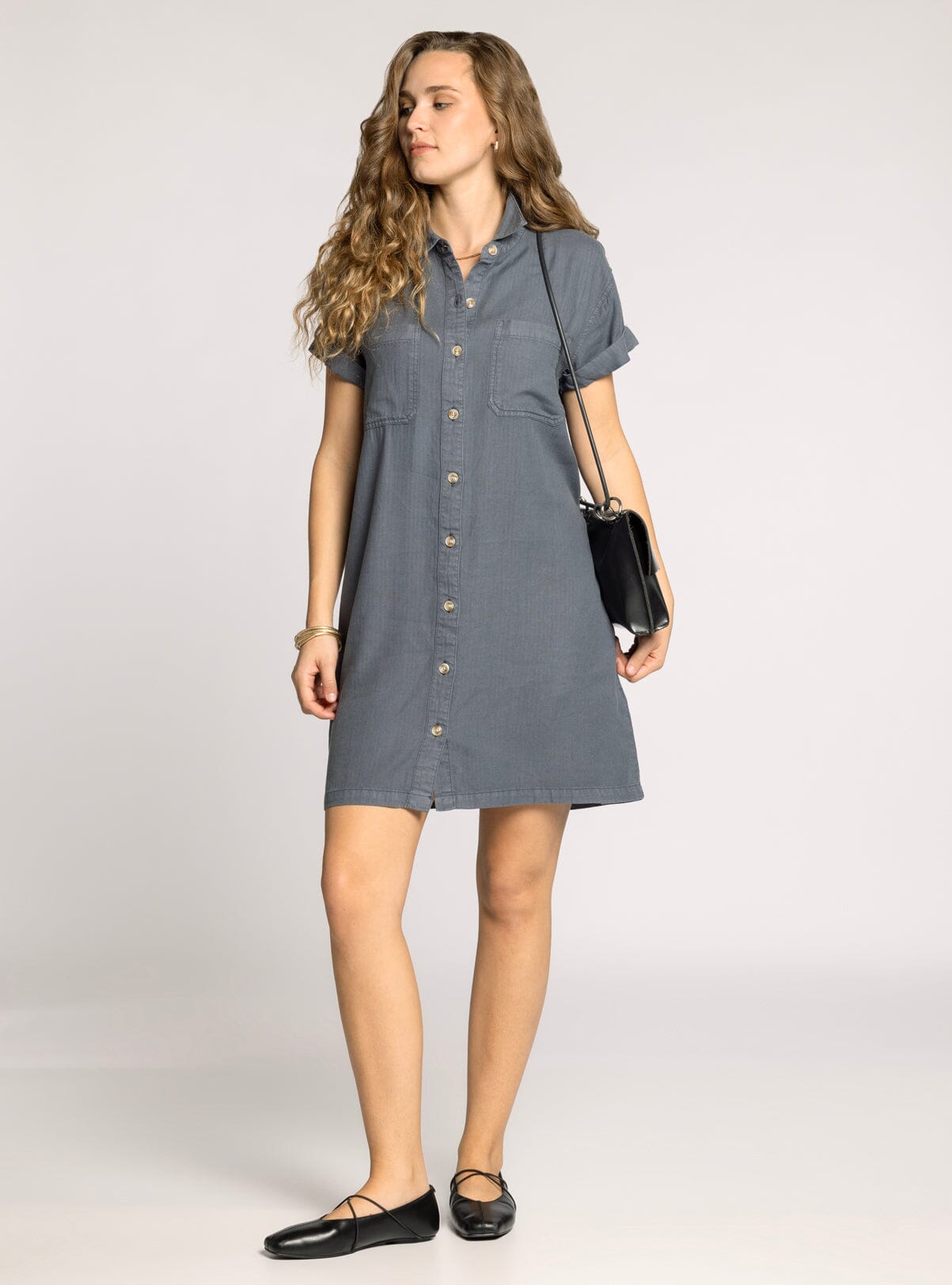 Effortless style meets everyday comfort in The June Mini Dress. This charcoal grey button-down features a classic collared neckline and functional side pockets—perfect for keeping your essentials close. The relaxed silhouette transitions seamlessly from casual outings to laid-back weekends, while the structured fabric maintains its shape throughout the day. A versatile wardrobe essential that works as hard as you do.