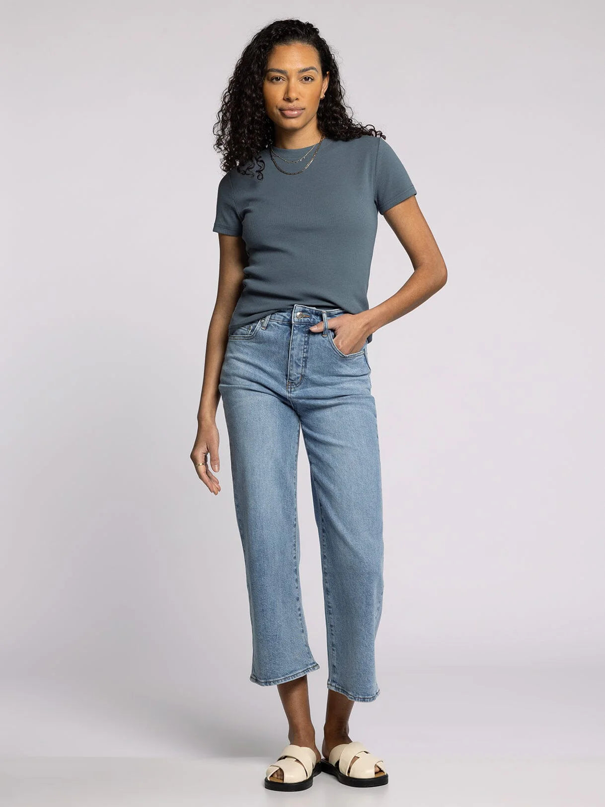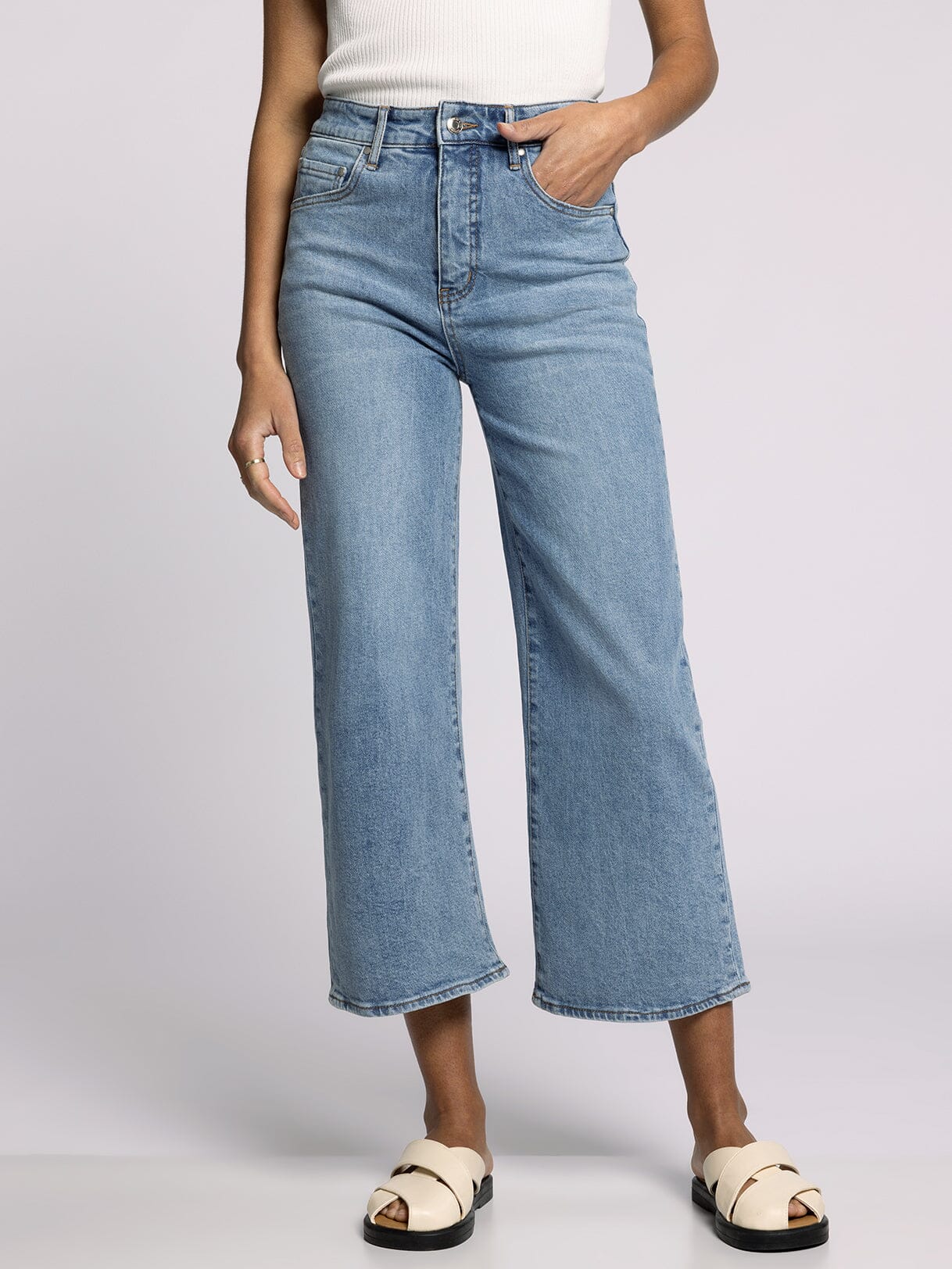 The Luca High Rise Jean delivers effortless style with its flattering high-rise cut and relaxed wide-leg silhouette. Crafted by Thread and Supply, these medium wash jeans offer a versatile foundation for any wardrobe—dress them up with heels or keep them casual with sneakers. The elevated waistline creates a polished, elongating effect while the generous leg provides all-day comfort and movement. Perfect for those seeking a timeless denim piece that balances contemporary fit with classic appeal.
