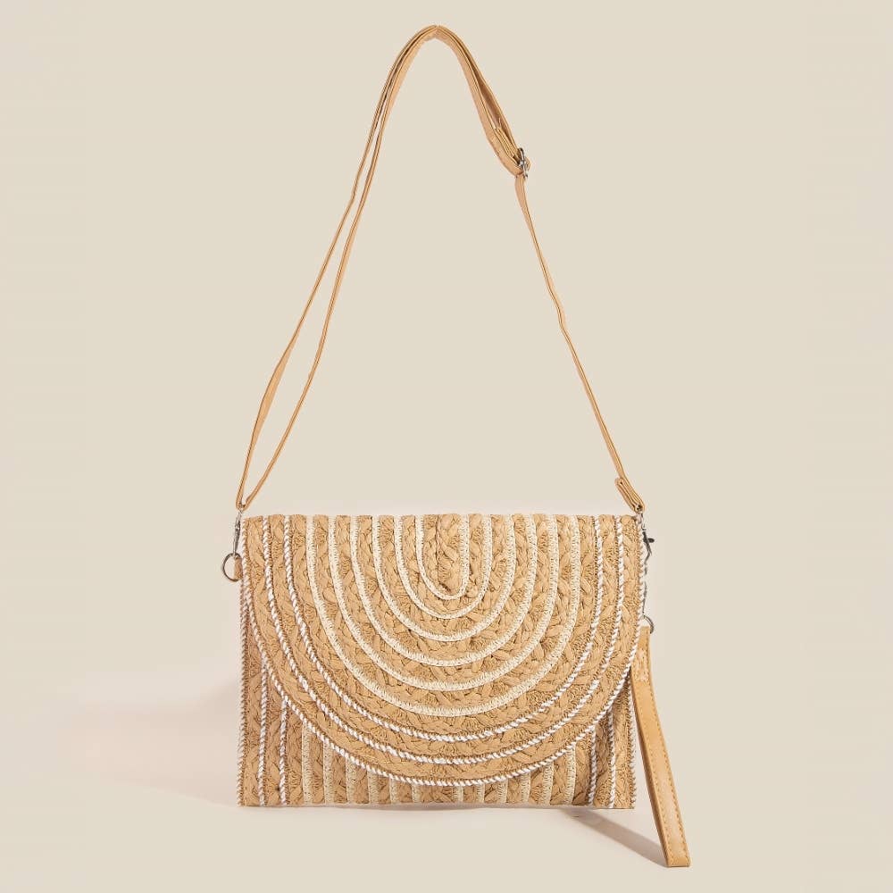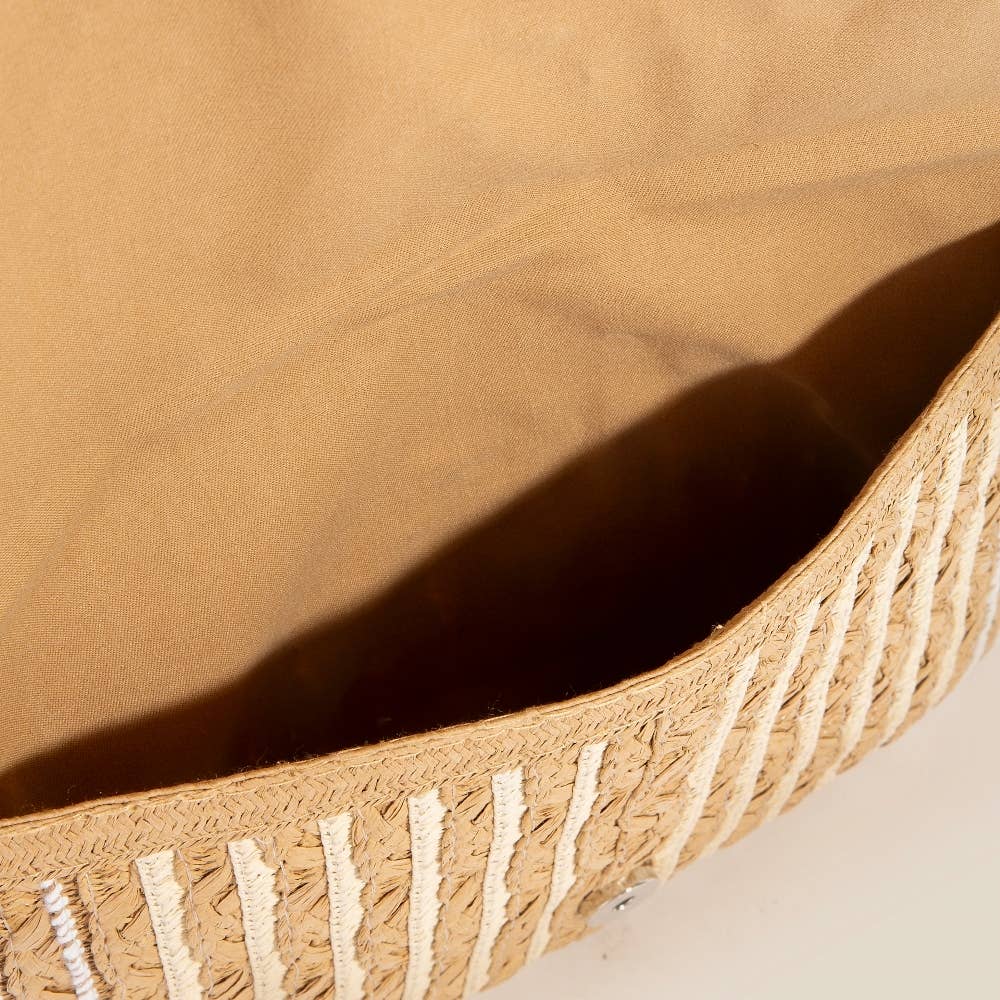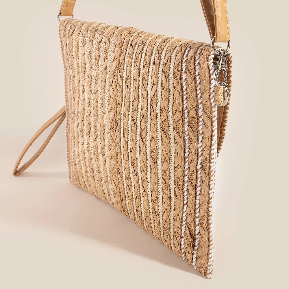 The perfect way to elevate any outfit, this clutch bag encompasses a grand white cord braided accent paper envelope design. This item is perfect for anyone who loves to accessorize and add some personality to their outfits.